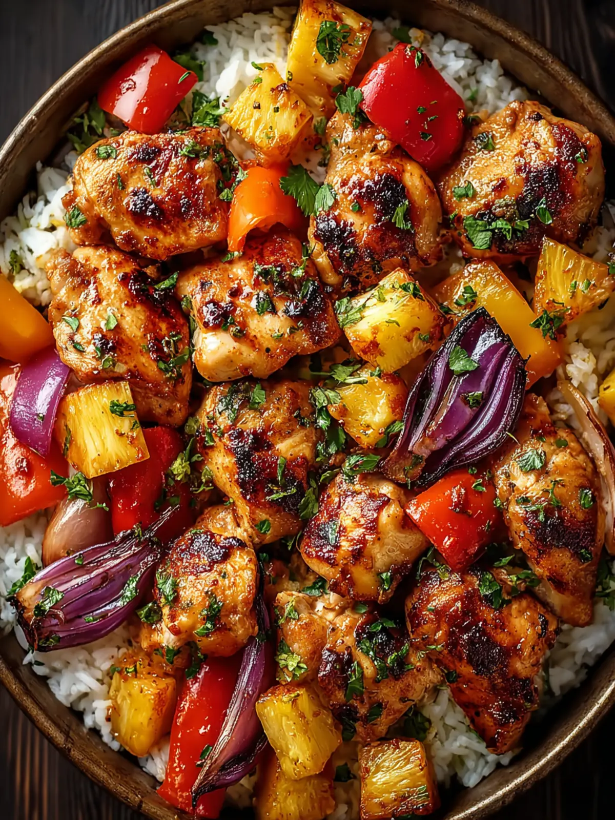 Juicy Pineapple: The fresh pineapple not only enhances the dish’s tropical essence but also infuses the chicken with moisture, creating tender bites that are a joy to eat. You’ll love how the warmth of the baked pineapple complements the savory notes of the chicken.